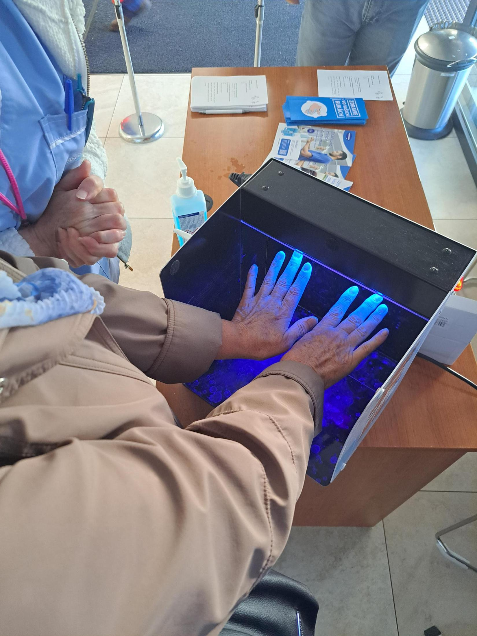 V našom zdravotníckom zariadení ste si mohli vyskúšať,ako steúspešní pri dezinfekcii rúk pod UV svetlom a zároveň priučiť, aký je najúčinnešjí postup dezinfekcie rúk. Za vyplnený anonymný dotazník každý obdržal malý darček.
